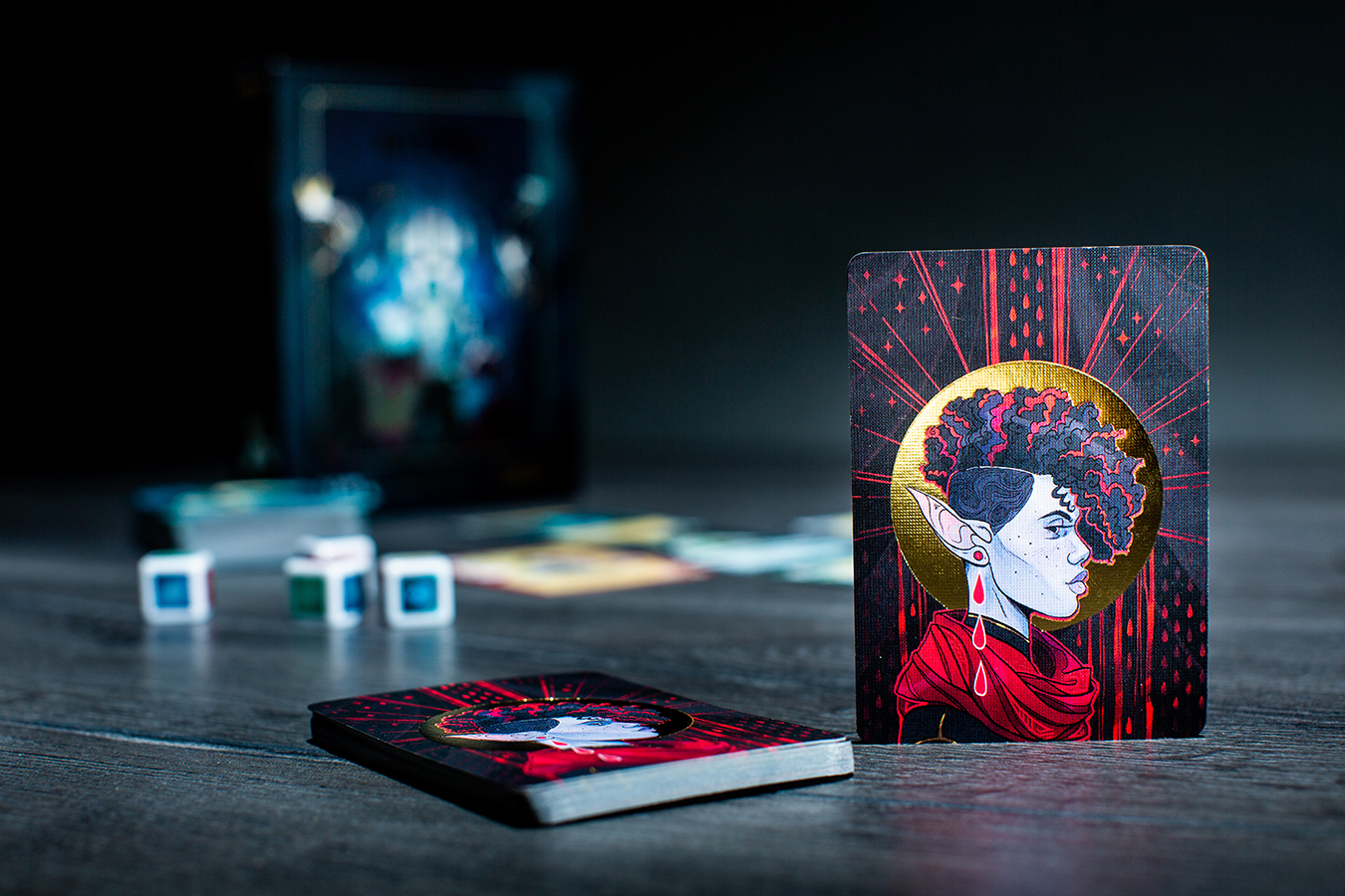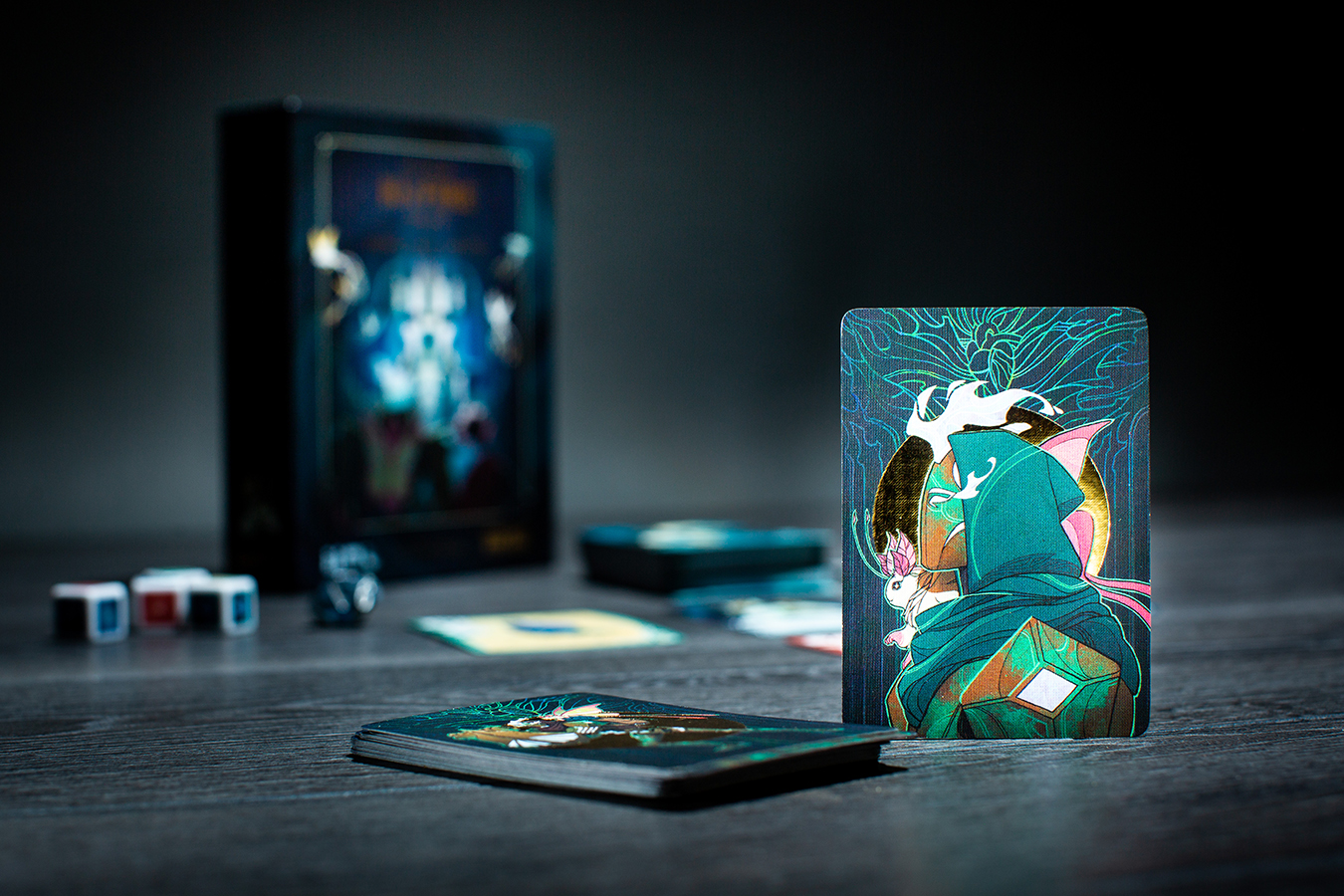 Get a well-balanced, re-playable & expandable experience with gorgeous illustration and premium component finishes like linen, gold foil, and UV spot. The sturdy cover of the box is 3x thicker than a standard board game lid. Illustrated on the inside, ready to be used as a dice tray.